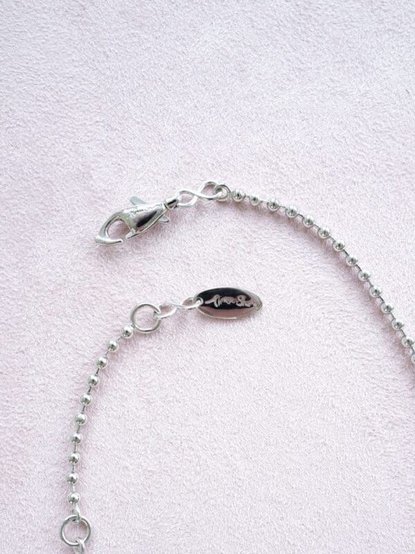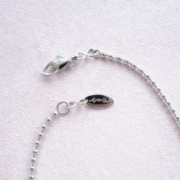 Fish & ball 18″ necklace is one of Theresa’s favourite and signature design, made with white gold-plated vermeil sterling silver. The exquisite fish-shaped clasp design, gives it a very unique and fresh look in your jewellery collection, certainly a collectable piece, and it goes well with all our charms. Necklace also comes with adjustable length, suitable for deep neckline outfits as well as high neckline clothings.